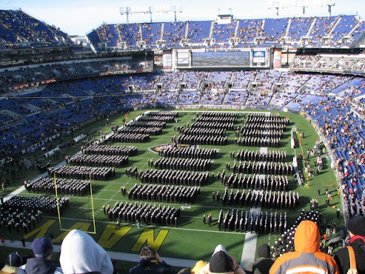 I finally made it to "America's Favorite"....the Army-Navy game. It was a cold Baltimore morning, fans crowding into the light rail system very early on, but logistically, it was an easy proposition. We got off the train across the street from M&T Bank stadium, went to our seats and watched the Cadets and Mids marchon.
